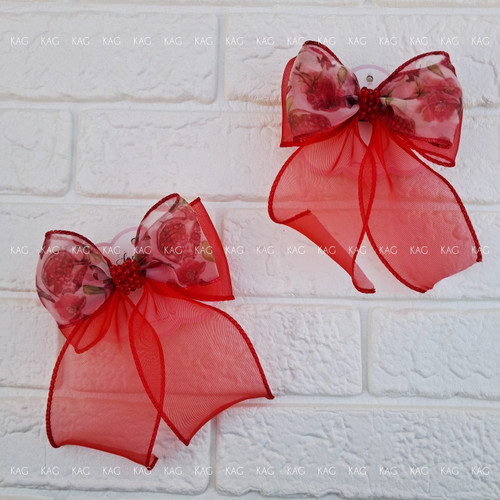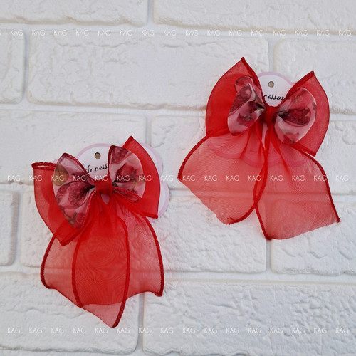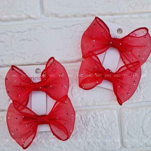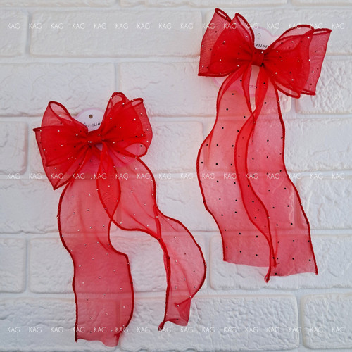گیره پاپیون حریر دنباله دار نگین دار قرمز